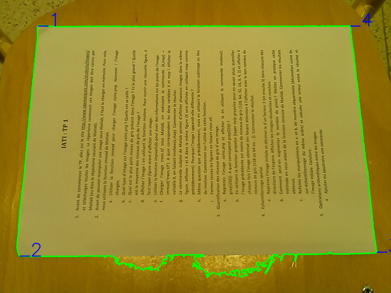 after that, I make the contours, I see clearly the quadrilateral, and find the corners.