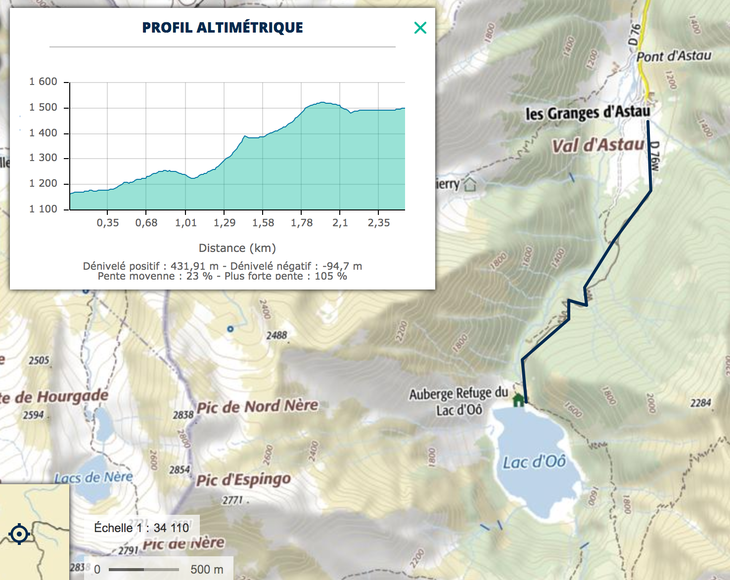 Exemple : montée au lac d'Oo depuis les granges d'Astau.