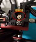 Changez la bobine et replacez le nouveau fil dans l’extrudeur en pinçant celui-ci comme précédemment. Il est parfois un peu difficile de le faire rentrer dans l’orifice prévu juste après la molette crantée. Il faut parfois faire tourner le fil entre ses doigts pour y arriver.